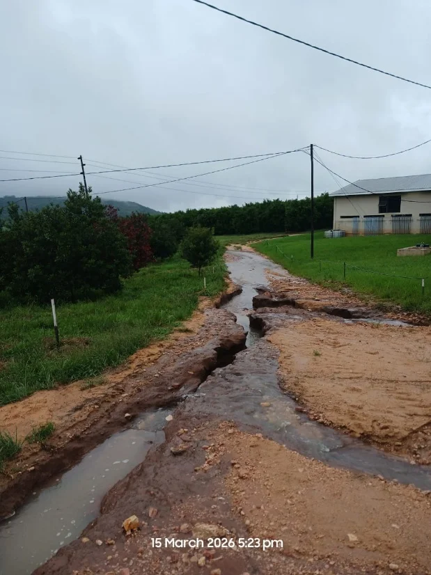 We are fortunate that we have no damage to any orchards or general infrastructure. We welcome the rain but it does make it difficult to enter the orchards for normal pest and disease control.